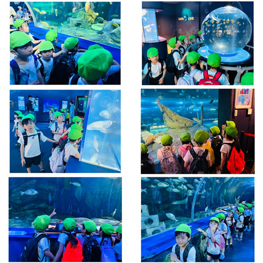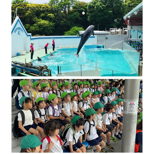 お昼ご飯は、水族館のそばにある区民公園でシートを敷いてみんなで食べました。あっという間に帰る時間になり、「楽しかった!」「もっと見たかった!」と話していた子ども達。明日以降も楽しかったことを思い出しながら、幼稚園での遊びも楽しみたいと思います。
