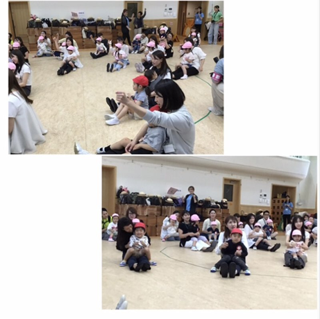 年少組が、親子ふれあいデーを行いました。保護者の方と幼稚園で一緒に過ごせることを楽しみにしていた子どもたち。遊戯室にみんなで集まり、親子で「どうぶつ体操1・2・3」や「ばすにのって」をしました♪